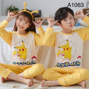 Unisex Nightwear Full Sleeve Round Neck Top With Full Length Elastic Pajamas
