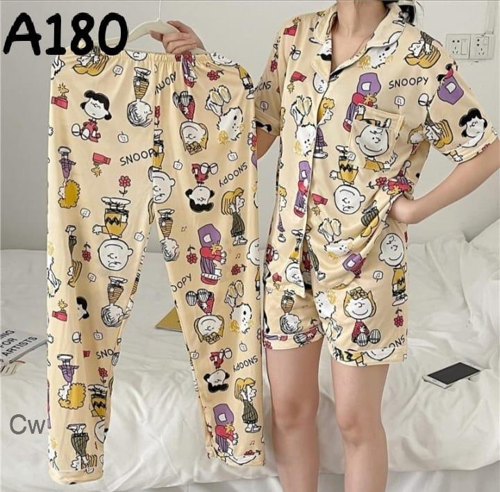 Beautiful Snoopy Full Sleeve Button Down Collar Yellow Top With Full Length Yellow Elastic PajamasÂ