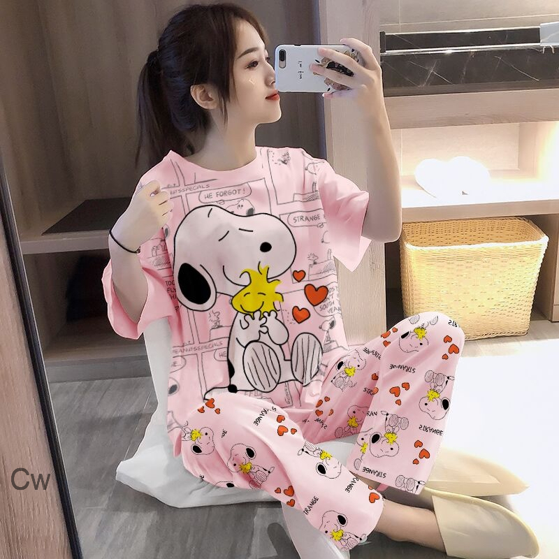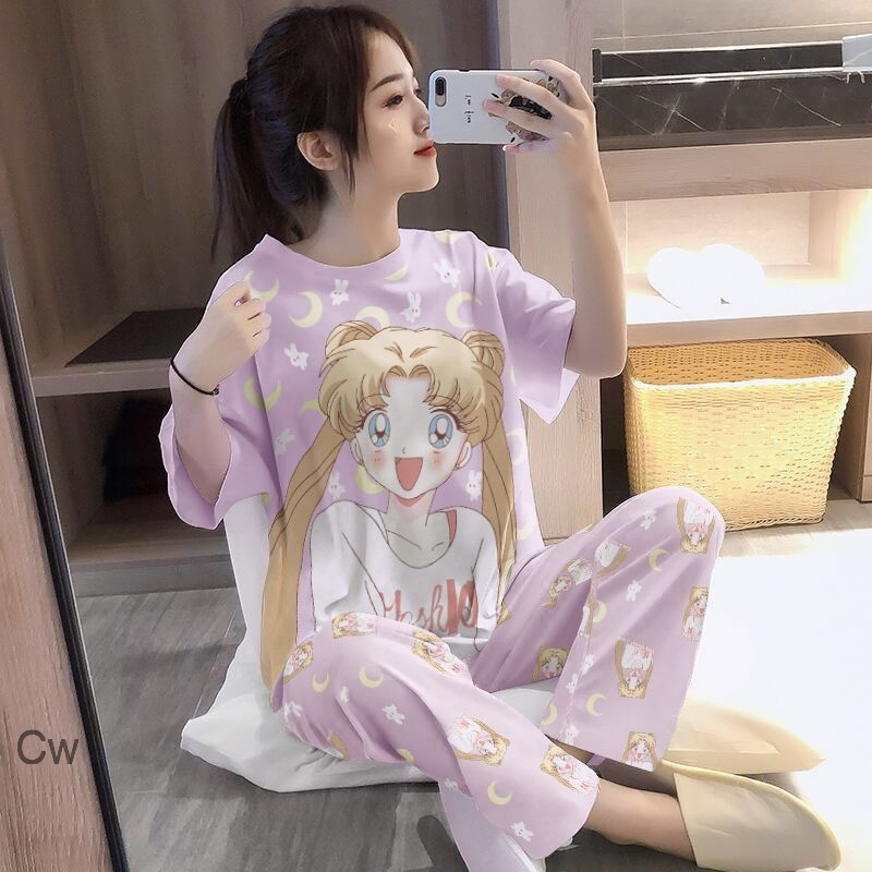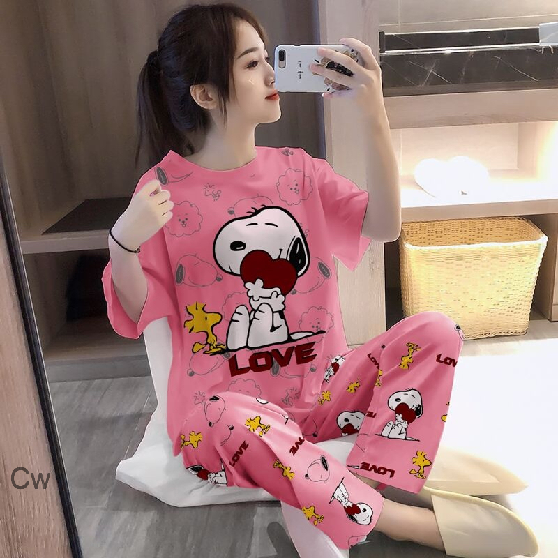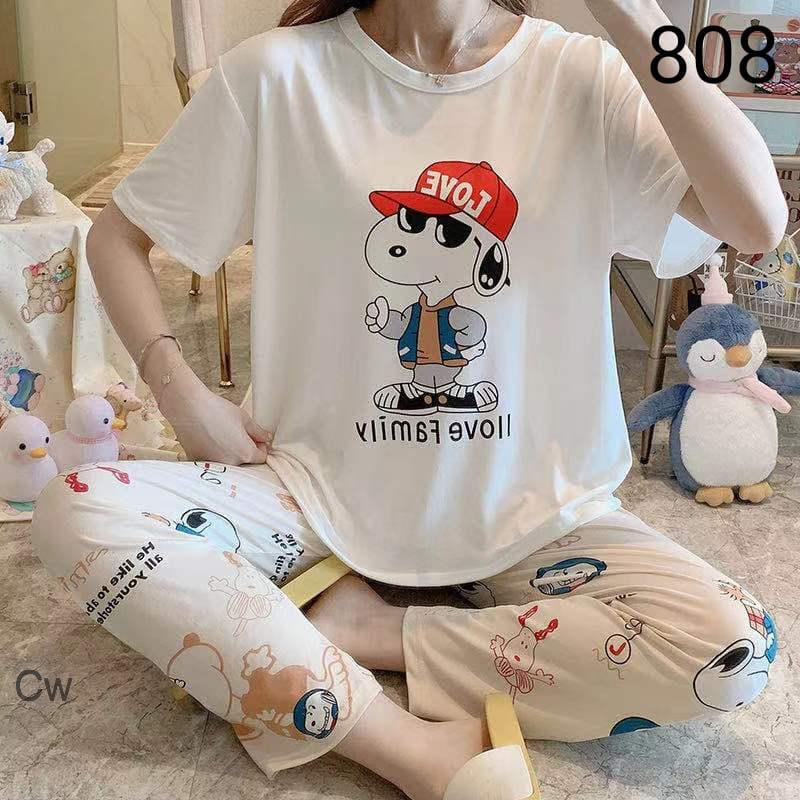 Beautiful Half Sleeves Top And Full Length Pajamas