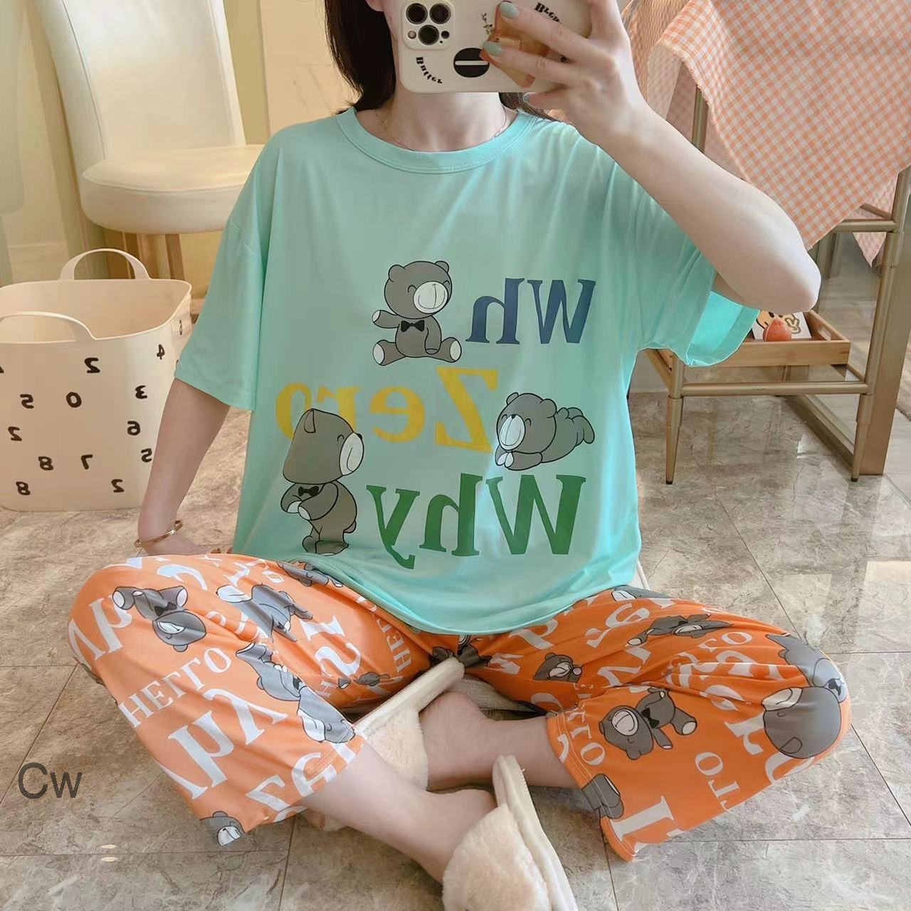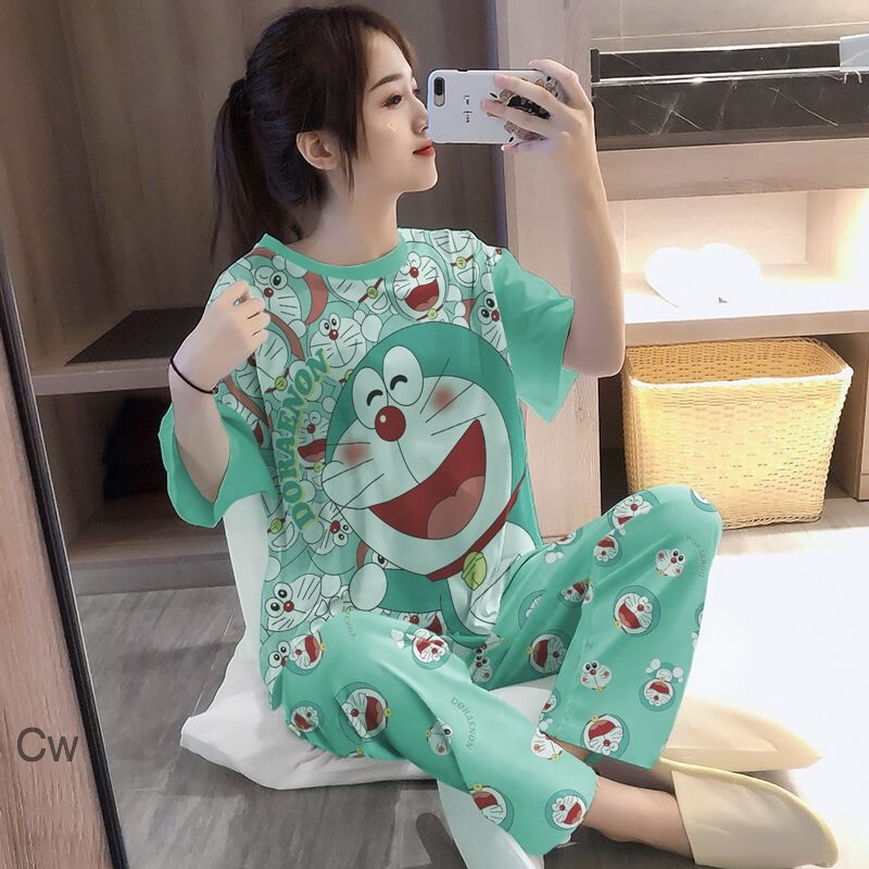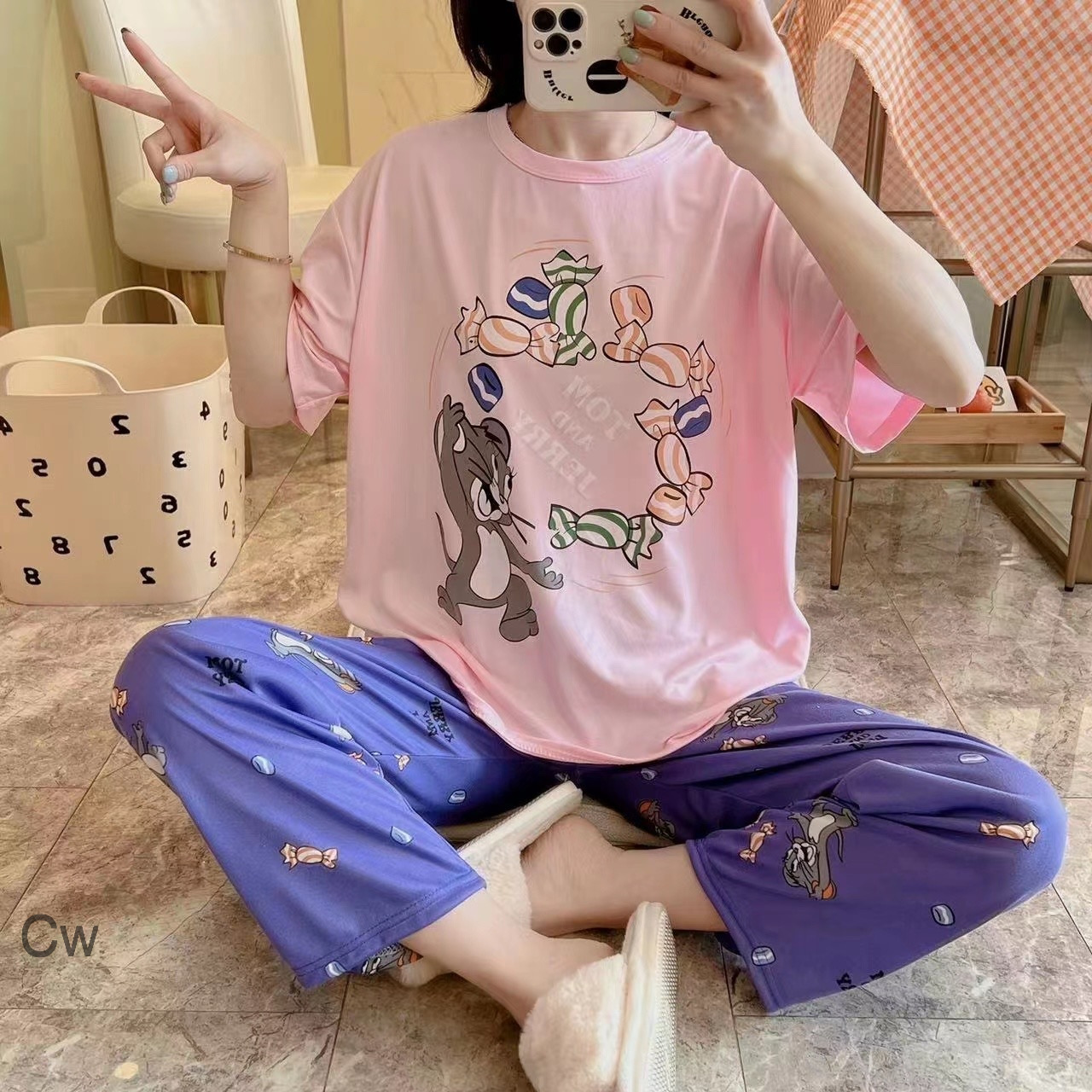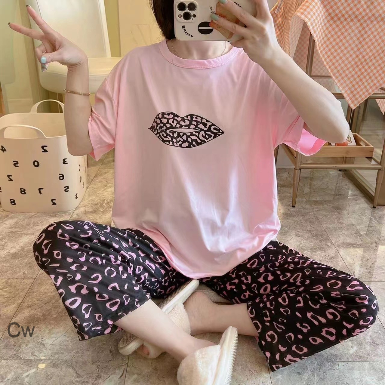 Beautiful Half Sleeves Top And Full Length Pajamas