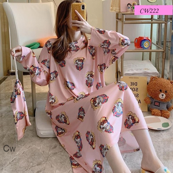 Nighty In Full Sleeve Round Neck Long Top Length -42”