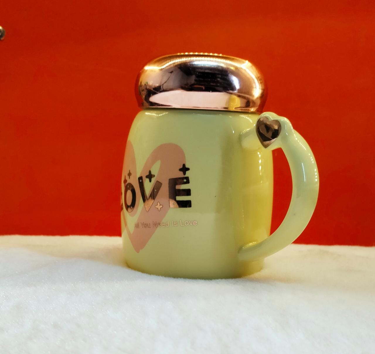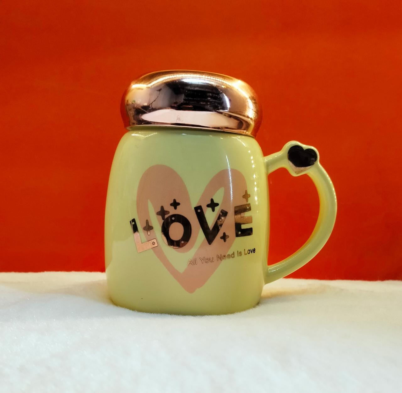 Love Yellow Birthday Gift For Wife Multi Ceramic Coffee Mug With Heart Shape Lid For Gifts For Girlfriend, Birthday Gift For Girlfriend, Valentine Gift For Partner .325 ml.