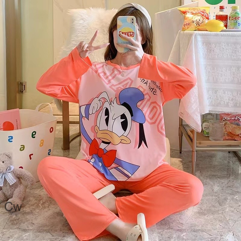 Beautiful Chip N Dale Full Sleeve Button Down Collar Brown Top With Full Length Brown Elastic Pajamas