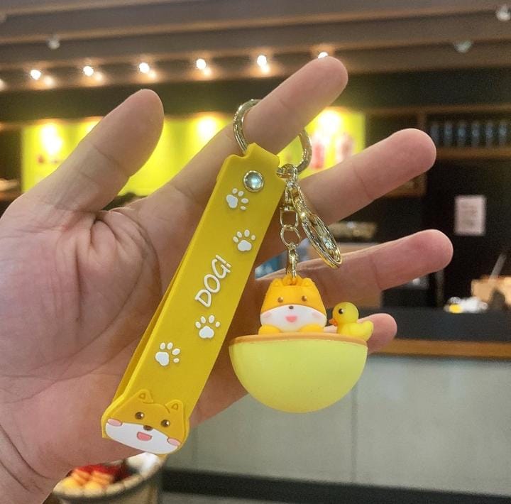 Lovely 3D Dog Keychain With Wrist Strap Bag Key Ring.
