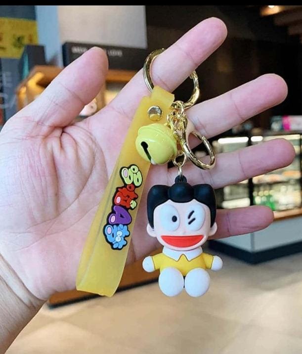Baby 3D Nobita Keychain With Band In Yellow Colour .