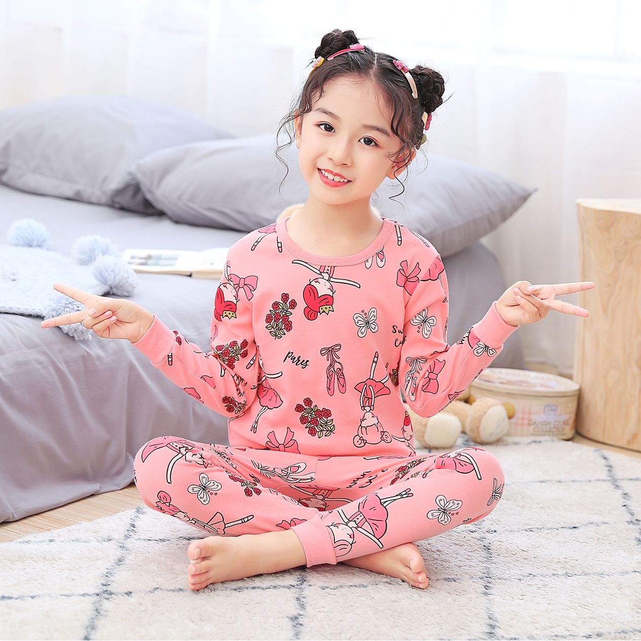 Full Sleeve Round Neck Top With Full Length Elastic Pajamas