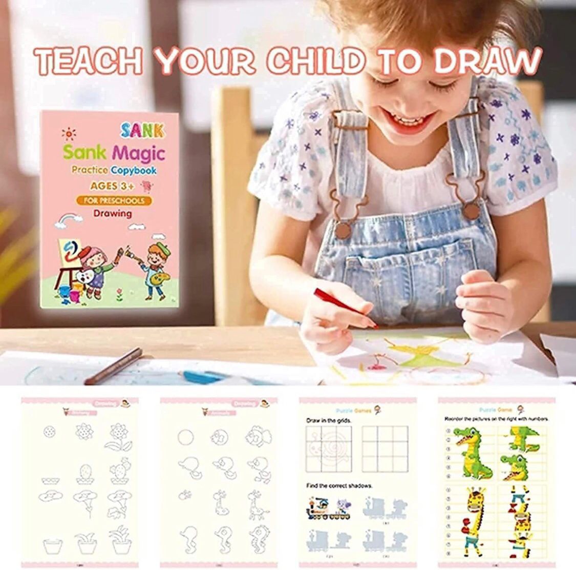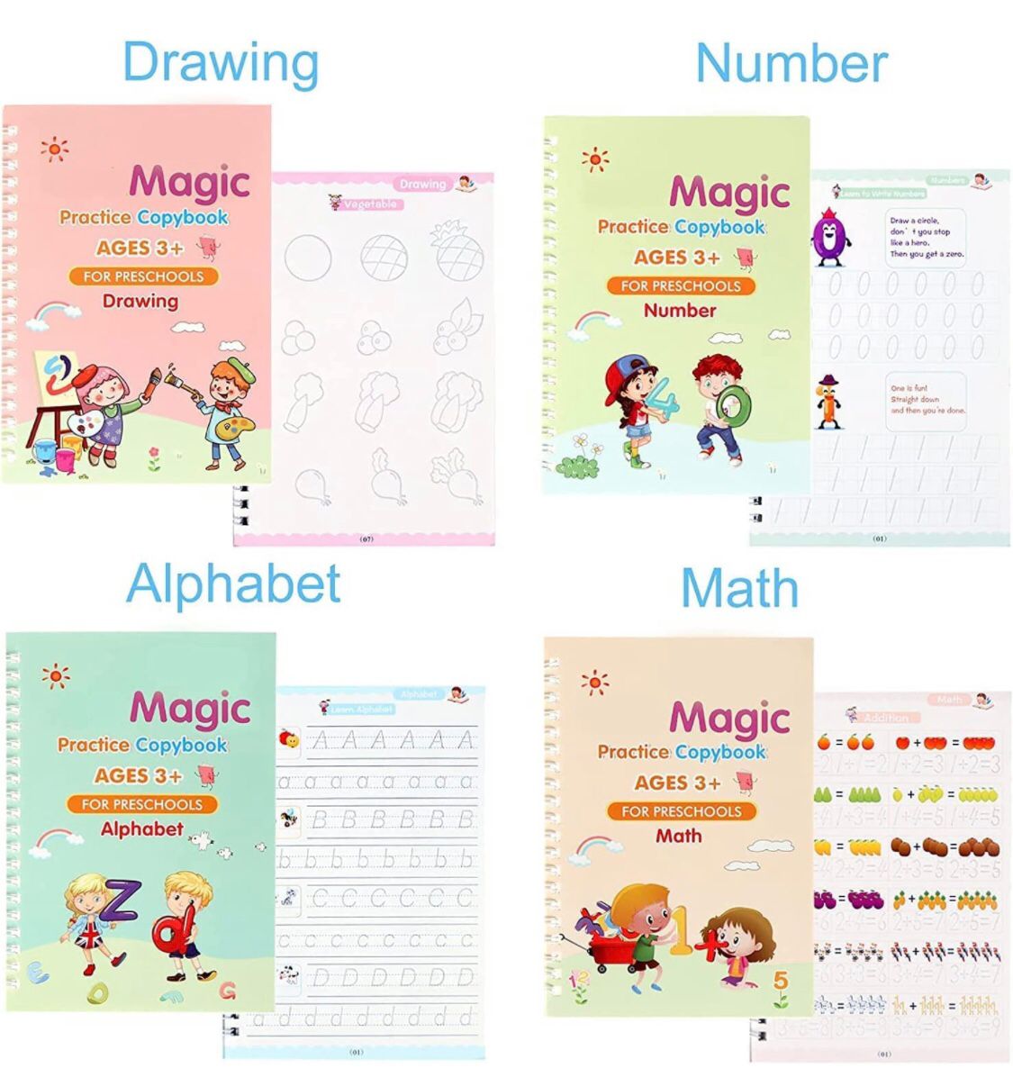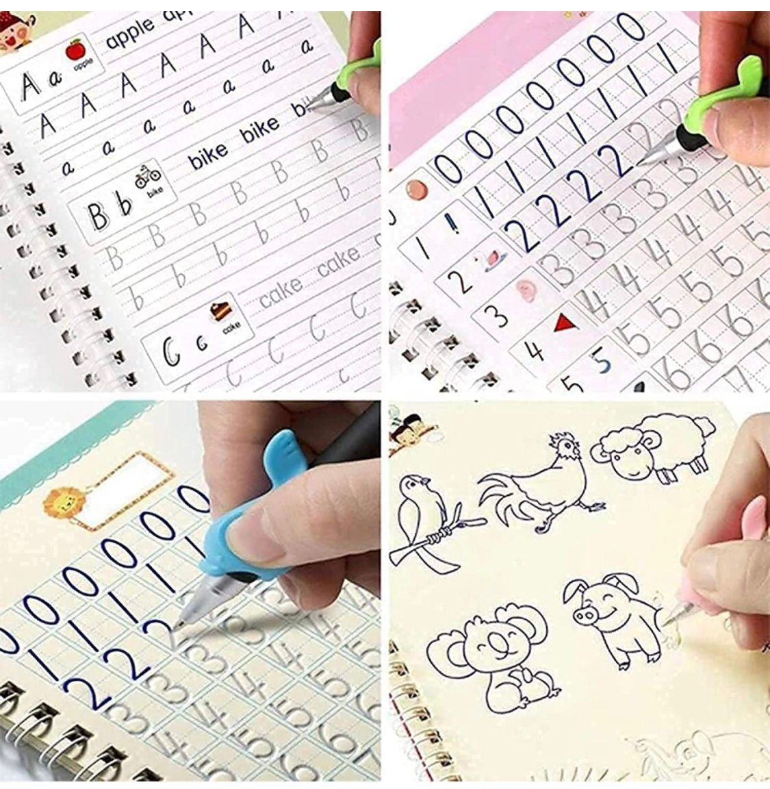 Sank Magic Practice Copybook, (4 BOOK + 10 REFILL+ 2 Pen +2 Grip) Number Tracing Book for Preschoolers with Pen, Magic Calligraphy Copybook Set Practical Reusable Writing Tool Simple Hand Lettering
