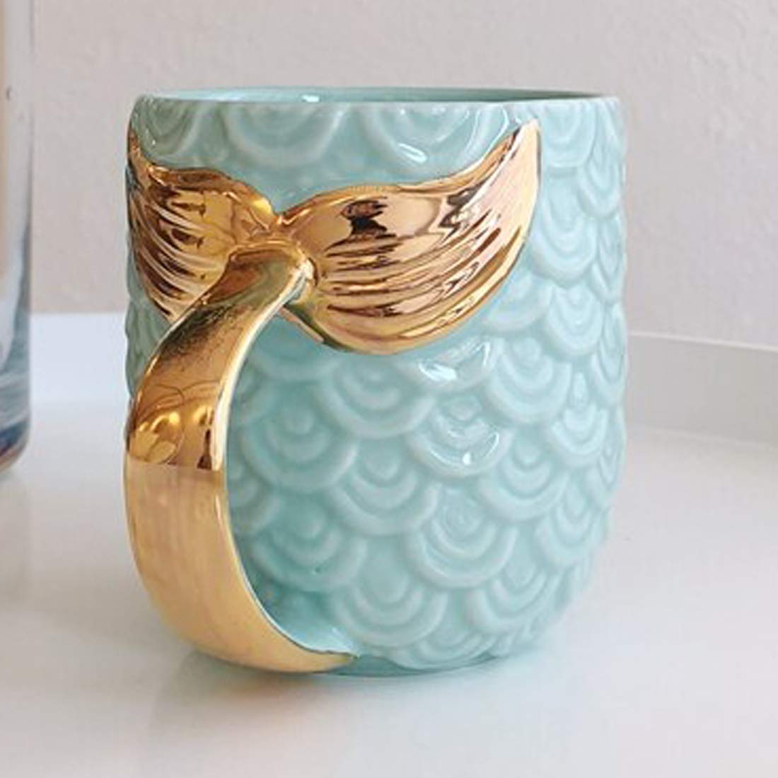 3D Ceramic Birthday Gift Mermaid Tail Coffee Mug Tea Cup Turquoish Blue 420 ml
