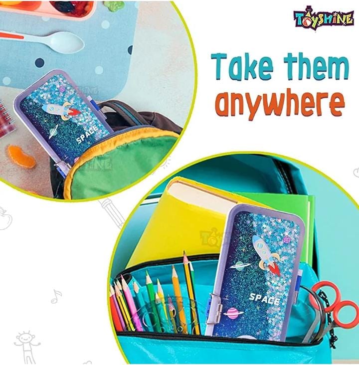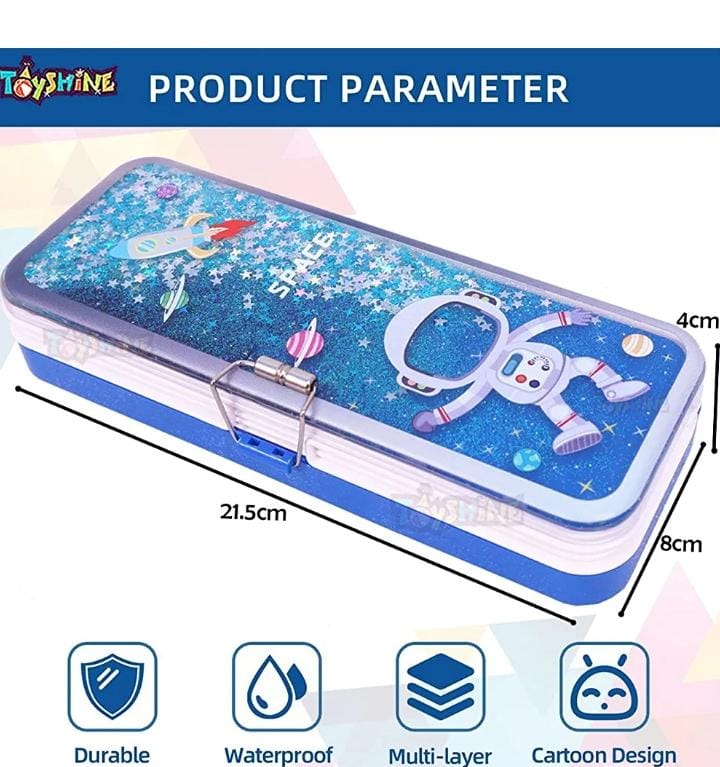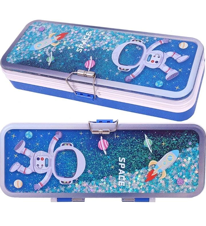 Double Compartment Glitter Star Flowing Pencil Box For Kids -Astronaut Space.
