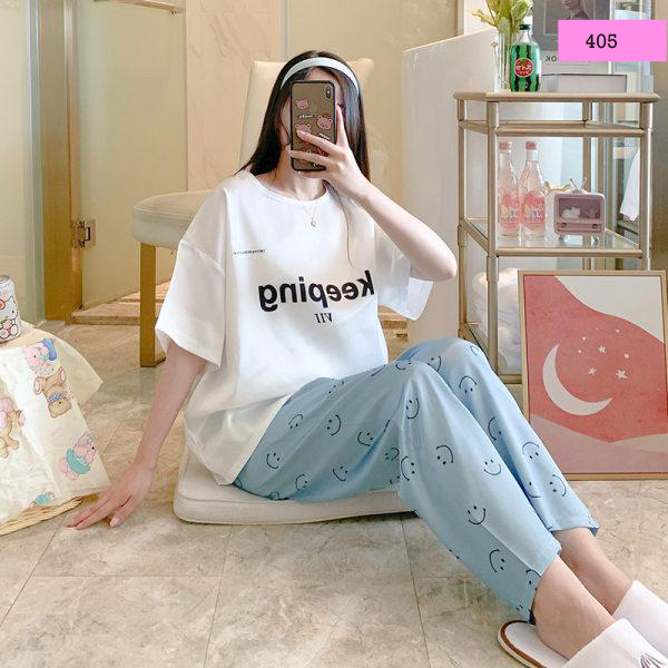 Beautiful Half Sleeves Top And Full Length Pajamas