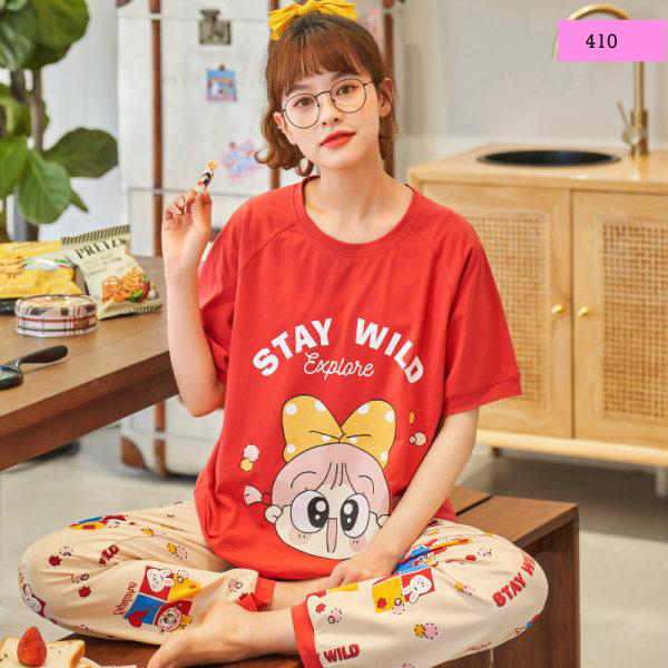 Beautiful Half Sleeves Top And Full Length Pajamas