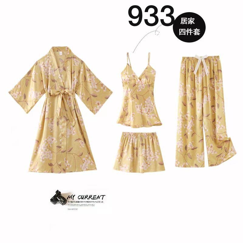 Stay comfortable and stylish this season in our 4pcs set silky printed pajamas, Feel Luxury And Comfortable .