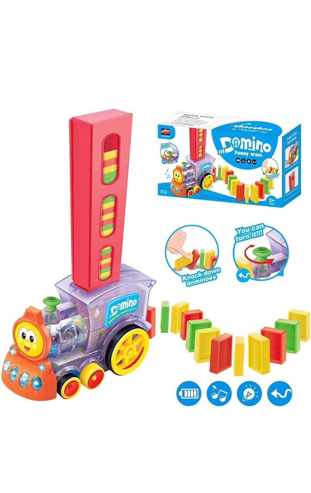 Dominos Funny Train Blocks Set, 60pcs Domino Train Toy with Music and 3DLights, Automatic Dominos Blocks Laying Toy Train Set